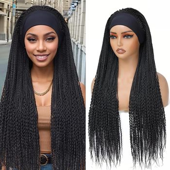 Doos Gevlochten Hoofdband Pruiken Voor Zwarte Vrouwen Micro Vlechten 28 Inch Lange Pruiken Met Enkele Twist Synthetische Pruiken Met Kleine Vlechten